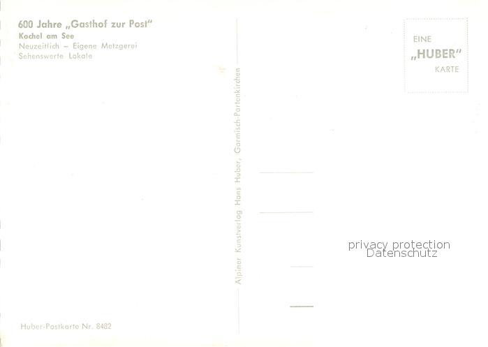 73687421 Kochel See 600 Jahre Gasthof zur Post Wandmalerei Huber Karte Nr. 8482 postalisch nicht gelaufen Erhaltung siehe scans [FriedD77] KatCode: 11110009173133