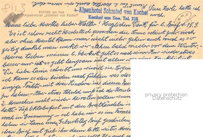 72775009 Kochel See Alpen-Hotel Schmied von Kochel postalisch nicht gelaufen Erhaltung siehe scans [NatalD47] KatCode: 11110009173133