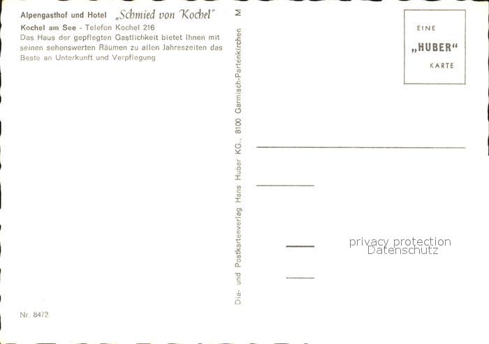 72535235 Kochel See Alpengasthof Hotel Schmied von Kochel Fassadenmalerei Huber Karte Nr 8472 postalisch nicht gelaufen Erhaltung siehe scans [FriedD77 kt118box] KatCode: 11110009173133