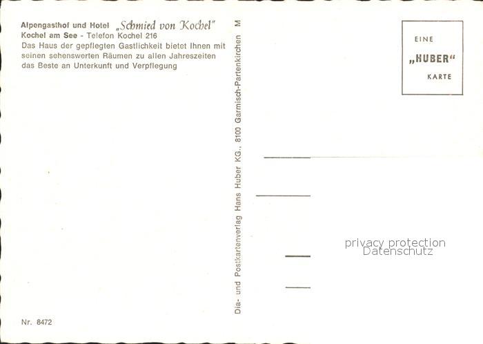71994453 Kochel See Alpengasthof Hotel Schmied von Kochel postalisch nicht gelaufen Erhaltung siehe scans KatCode: 11110009173133