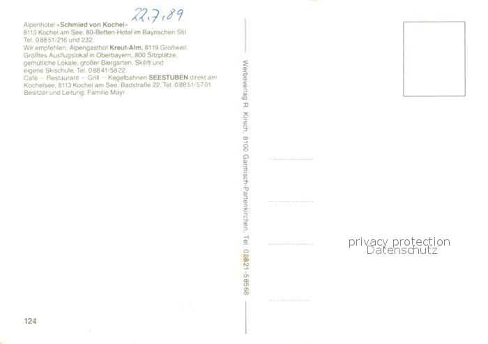 72985164 Kochel See Alpenhotel Schmied von Kochel postalisch nicht gelaufen Erhaltung siehe scans [LiesaD40] KatCode: 11110009173133