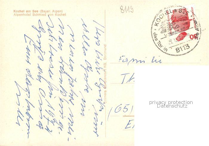73636157 alte Postkarte Kochel See Alpenhotel Schmied von Kochel Gruppenfoto postalisch gelaufen Erhaltung siehe scans [WerneD78] KatCode: 11110009173133
