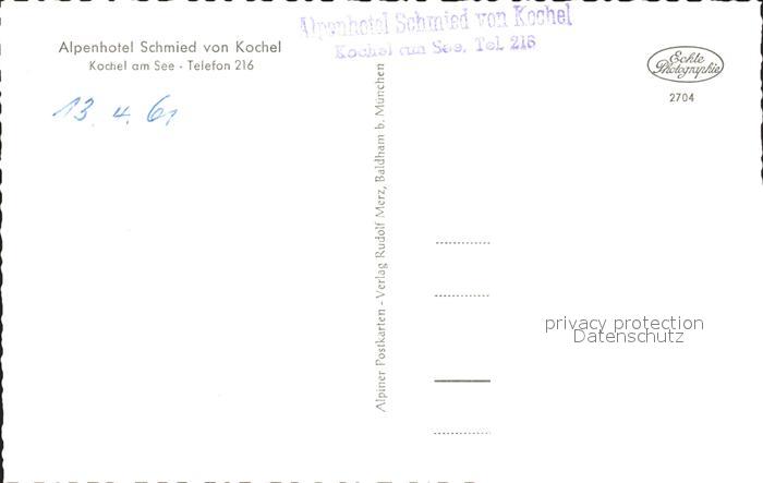 72131807 Kochel See Alpenhotel Schmied postalisch nicht gelaufen Erhaltung siehe scans KatCode: 11110009173133