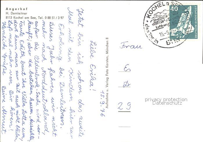 72565222 alte Postkarte Kochel See Angerhof postalisch gelaufen Erhaltung siehe scans [AntonD74] KatCode: 11110009173133
