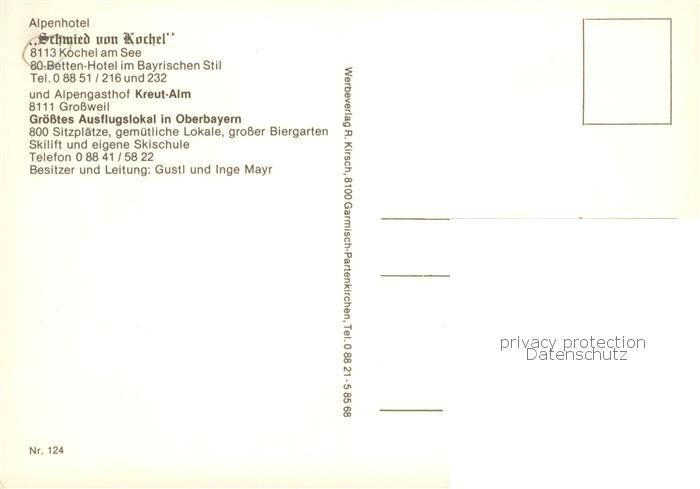 73835187 Kochel See Bayern Alpenhotel Schmied von Kochel Gastraeume Fliegeraufnahme postalisch nicht gelaufen Erhaltung siehe scans [WerneD78] KatCode: 11110009173133
