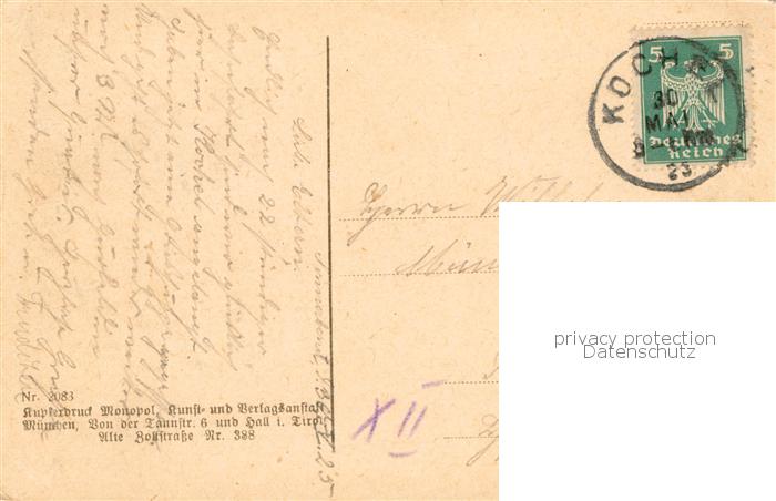 73807397 alte Postkarte Kochel See Bayern Hauptstrasse Denkmal Kupferdruck postalisch gelaufen Erhaltung siehe scans [FriedD77] KatCode: 11110009173133