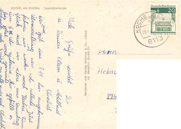 73913975 alte Postkarte Kochel See Bayern Jugendherberge postalisch gelaufen Erhaltung siehe scans [FriedD77] KatCode: 11110009173133