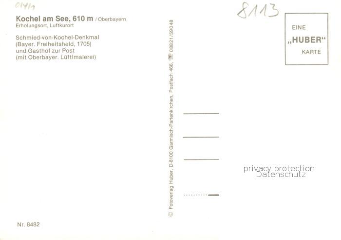 73867284 Kochel See Bayern Schmied von Kochel Denkmal und Gasthof zur Post postalisch nicht gelaufen Erhaltung siehe scans [WerneD78] KatCode: 11110009173133