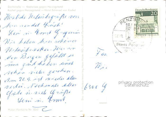 72547588 alte Postkarte Kochel See Dorfstr Kochelsee Herzogstand Hotel Schmied postalisch gelaufen Erhaltung siehe scans [WerneD78 kv017box] KatCode: 11110009173133
