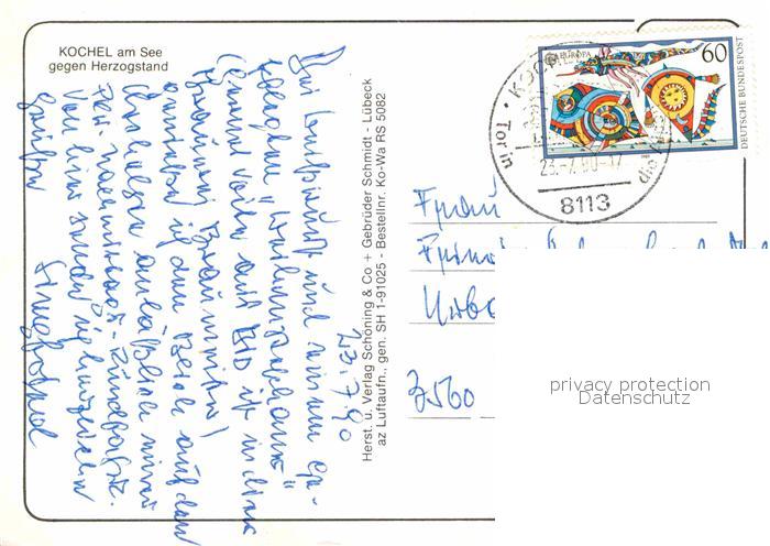 72877771 alte Postkarte Kochel See Fliegeraufnahme postalisch gelaufen Erhaltung siehe scans [AndreD76] KatCode: 11110009173133