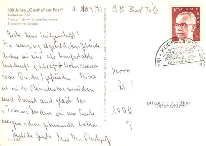 72991568 alte Postkarte Kochel See Gasthof zur Post postalisch gelaufen Erhaltung siehe scans [LiesaD40] KatCode: 11110009173133