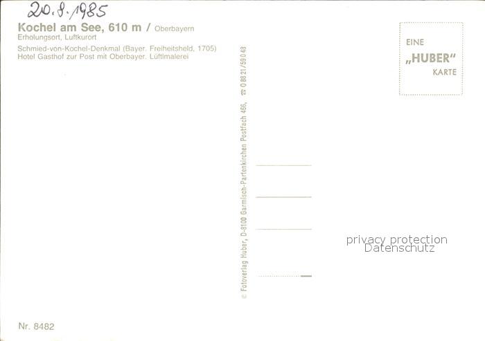 72315461 Kochel See Gasthof zur Post postalisch nicht gelaufen Erhaltung siehe scans KatCode: 11110009173133