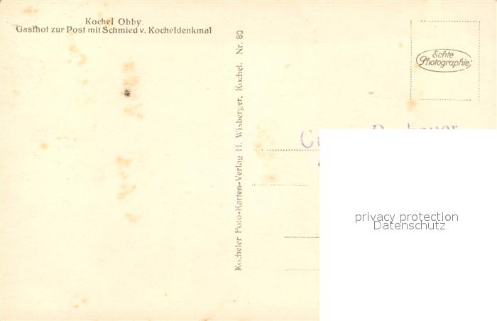 43108478 Kochel See Gasthof zur Post mit Schmied von Kochel Denkmal postalisch nicht gelaufen Erhaltung siehe scans [FriedD77] KatCode: 11110009173133