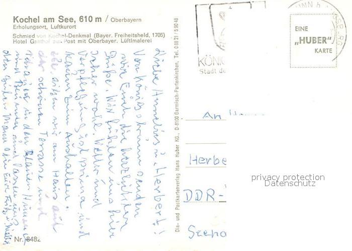 73005797 alte Postkarte Kochel See Gasthof zur Post Schmied von Kochel Denkmal postalisch gelaufen Erhaltung siehe scans [WerneD78] KatCode: 11110009173133