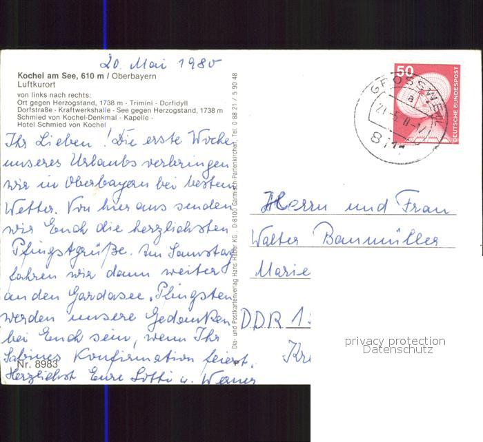72246816 alte Postkarte Kochel See Herzogstand Dorfpartie Kraftwerkshalle Denkmal Kapelle Hotel postalisch gelaufen Erhaltung siehe scans KatCode: 11110009173133