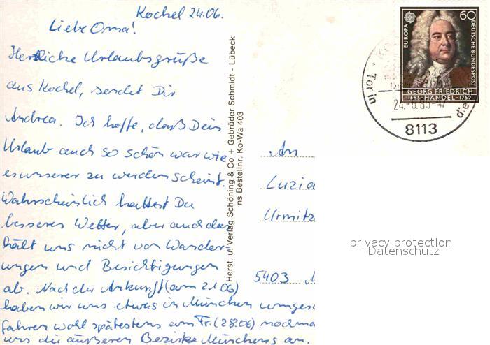 72724267 alte Postkarte Kochel See Ortsmotiv Blumenschmuck Hotel Restaurant Platz Brunnen Alpenpanorama postalisch gelaufen Erhaltung siehe scans [FriedD77] KatCode: 11110009173133