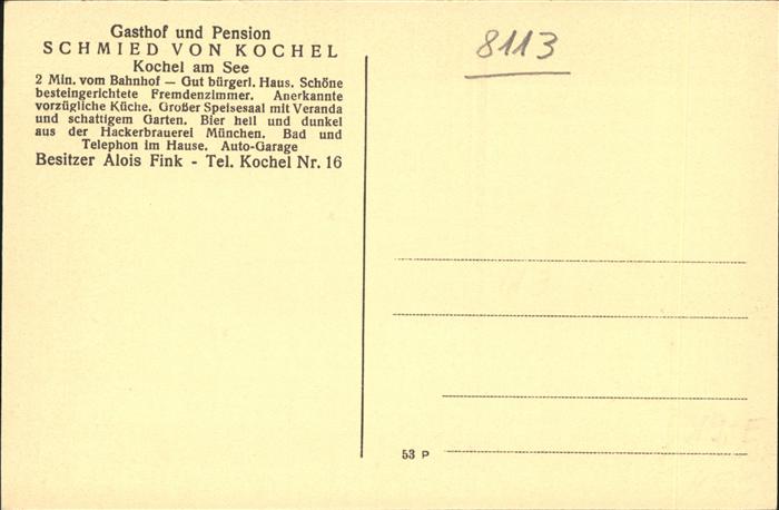 41219824 Kochel See Pension Gasthof Schmied von Kochel Oberbayern postalisch nicht gelaufen gute Erhaltung Alte Ansichtskarte Postkarte Lies Katcode 11110009173133