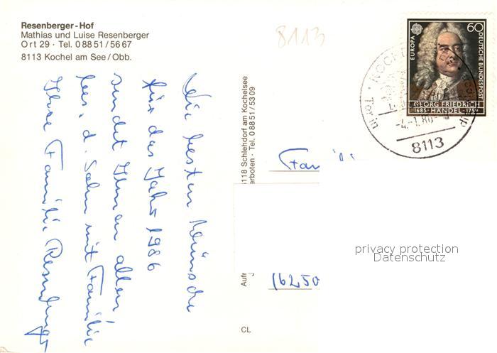 73219196 alte Postkarte Kochel See Resenberger Hof Bildstock postalisch gelaufen Erhaltung siehe scans [FriedD77] KatCode: 11110009173133
