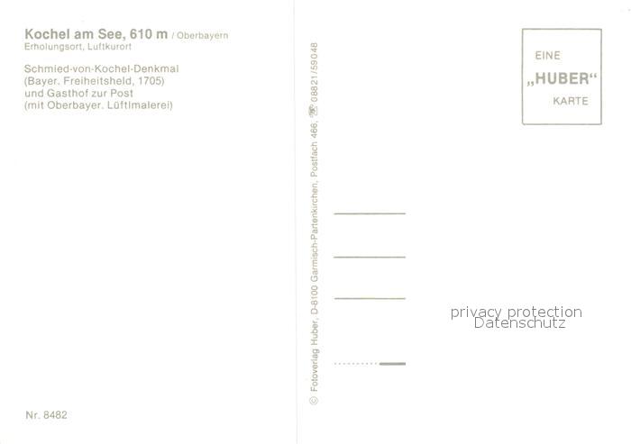 73271430 Kochel See Schmied von Kochel Denkmal Gasthof zur Post Lueftlmalerei postalisch nicht gelaufen Erhaltung siehe scans [KathaD81] KatCode: 11110009173133