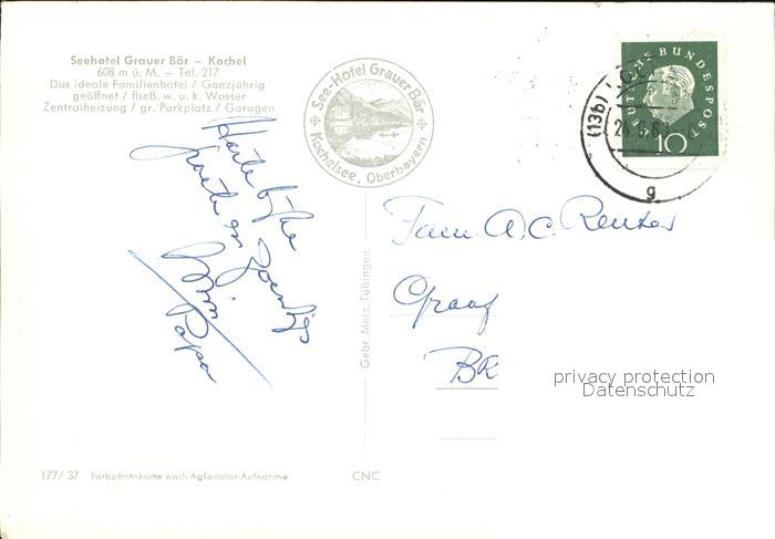 72414384 alte Postkarte Kochel See Seehotel Grauer Baer postalisch gelaufen Erhaltung siehe scans KatCode: 11110009173133