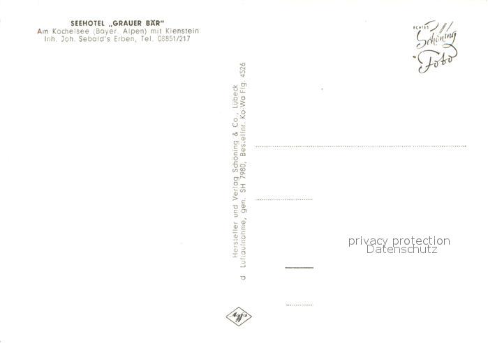 73657186 Kochel See Seehotel Grauer Baer am Kochelsee mit Kienstein Bayerische Alpen Fliegeraufnahme postalisch nicht gelaufen Erhaltung siehe scans [FriedD77] KatCode: 11110009173133