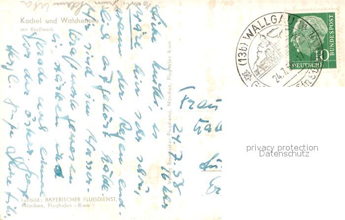 72978044 alte Postkarte Kochel See Walchsee Kraftwerk Alpen Fliegeraufnahme postalisch gelaufen Erhaltung siehe scans [FriedD77] KatCode: 11110009173133