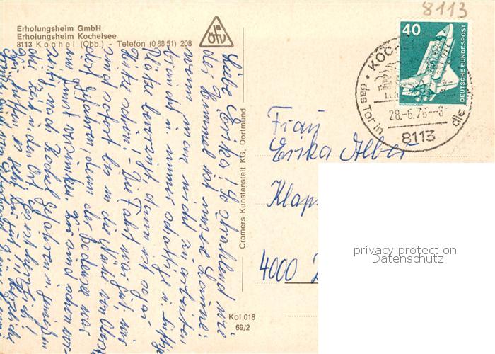 73829022 Kochelsee Erholungsheim Kochelsee postalisch gelaufen Erhaltung siehe scans [WerneD78] alte Postkarte Wern Katcode 11110009173133