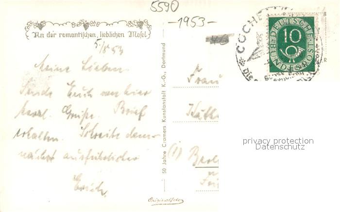 73695764 alte Postkarte Kochem Mosel Bruecke Burg postalisch gelaufen Erhaltung siehe scans [LiesaD40] KatCode: 11110007135020