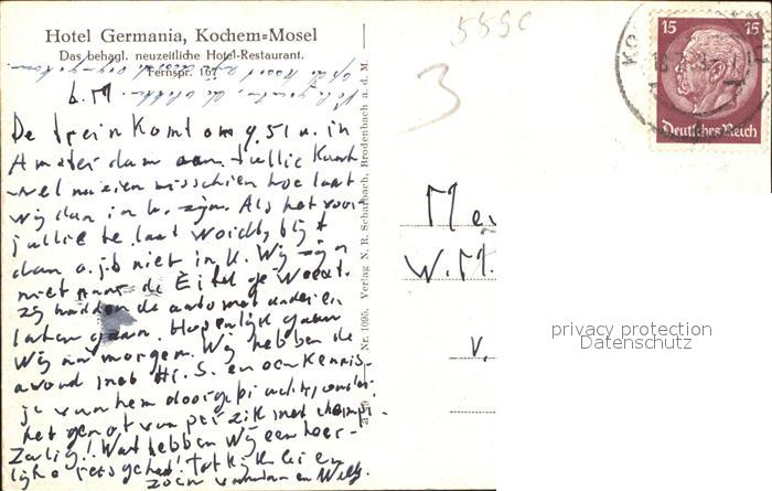 41590213 Kochem Moselpanorama mit Burg Hotel Germania KatCode 11110007135020