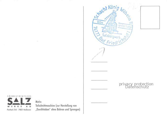 74052803 Kochendorf Bad Friedrichshall BW Salzbergwerk Teilschnittmaschine postalisch nicht gelaufen Erhaltung siehe scans [FriedD77] KatCode: 11110008125005