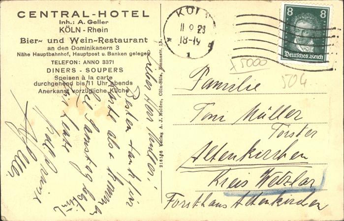41300496 Koeln Central Hotel A. Geller Bier- und Weinrestaurant KatCode 11110005315000