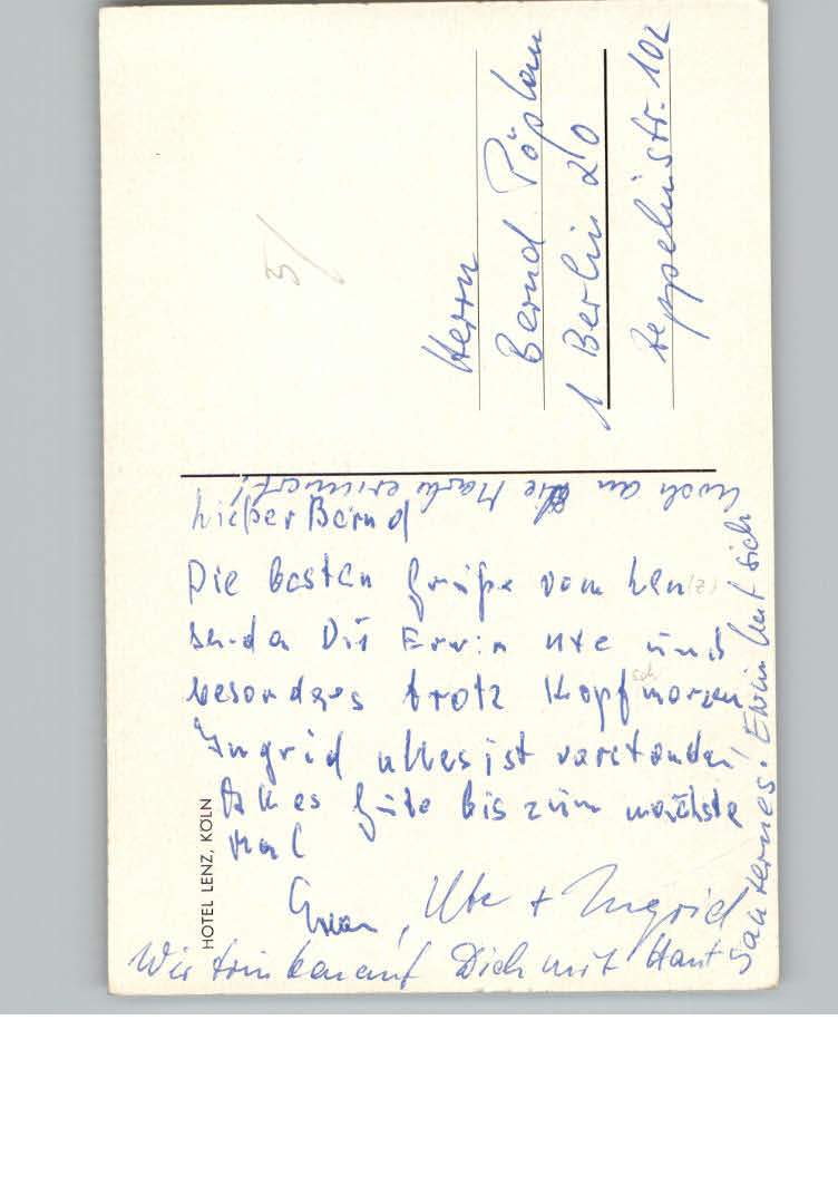31136707 Koeln Hotel Lenz postalisch nicht gelaufen KatCode: 11110005315000