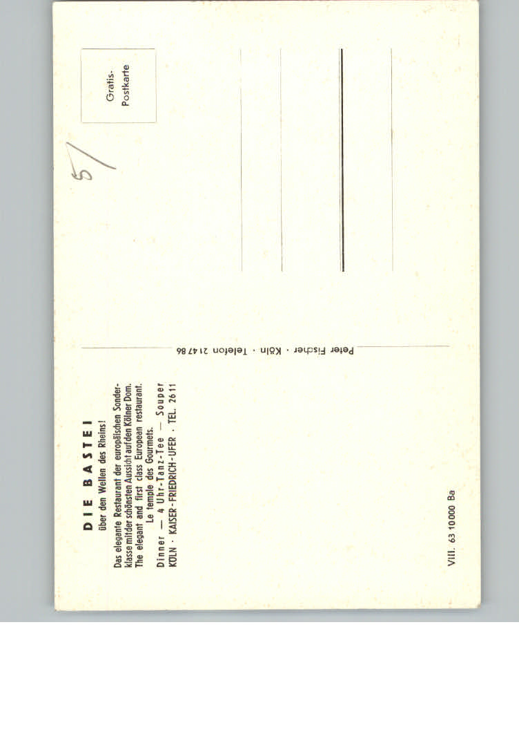 31136665 Koeln Restaurant Die Bastei postalisch nicht gelaufen KatCode: 11110005315000