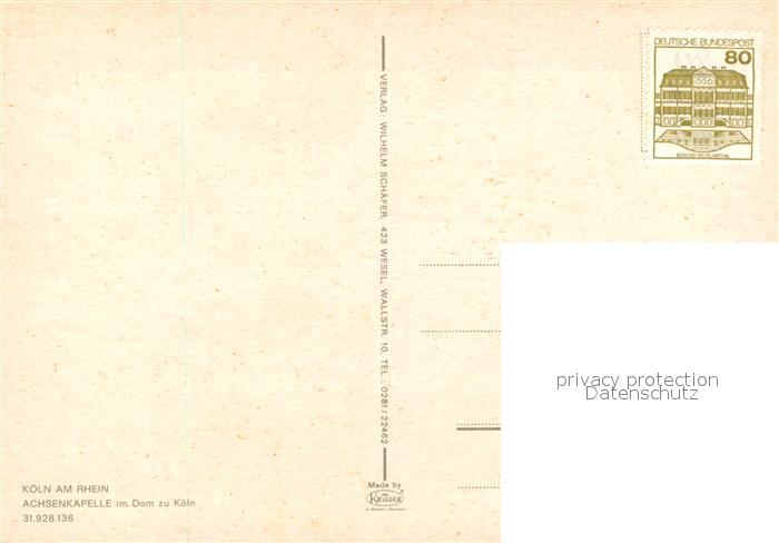73312076 Koeln Rhein Achsenkapelle Dom postalisch nicht gelaufen Erhaltung siehe scans [NatalD47] KatCode: 11110005315000