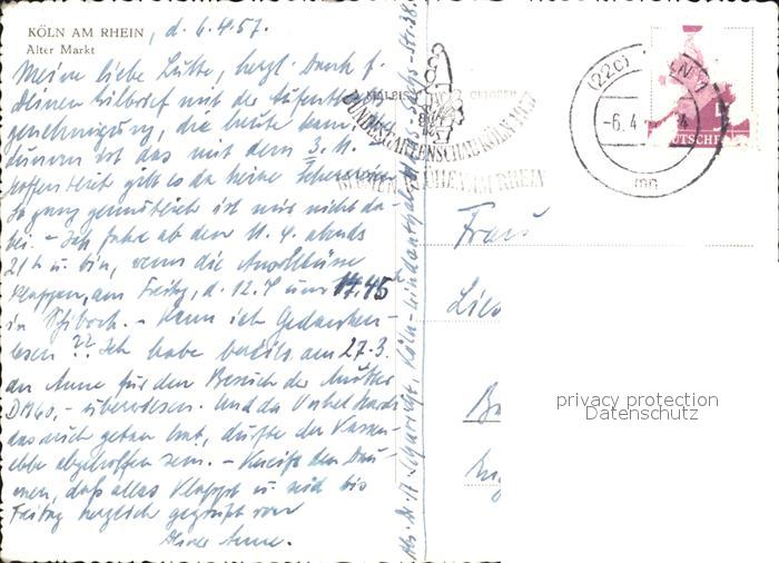 72591787 alte Postkarte Koeln Rhein Alter Markt Brunnen Denkmal postalisch gelaufen Erhaltung siehe scans [WerneD78] KatCode: 11110005315000