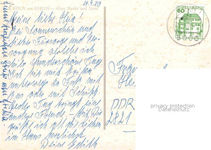 72622340 alte Postkarte Koeln Rhein Alter Markt Dom postalisch gelaufen Erhaltung siehe scans [NatalD47] KatCode: 11110005315000