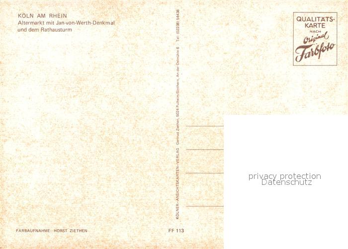 73000868 Koeln Rhein Altermarkt mit Jan von Werth Denkmal Rathausturm postalisch nicht gelaufen Erhaltung siehe scans [AndreD76] KatCode: 11110005315000