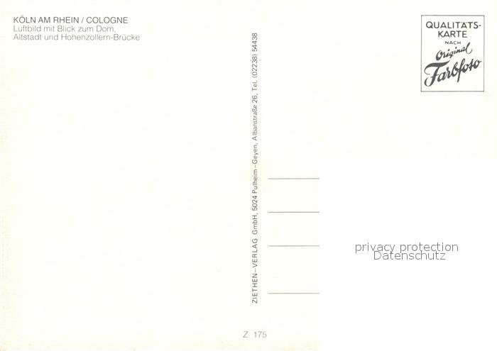 73203471 Koeln Rhein Altstadt Dom Hohenzollernbruecke Fliegeraufnahme postalisch nicht gelaufen Erhaltung siehe scans [FriedD77] KatCode: 11110005315000