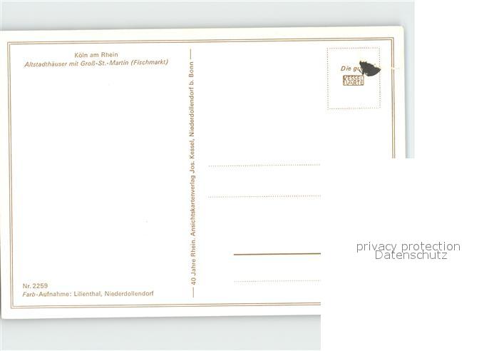 72256833 Koeln Rhein Altstadthaeuser mit Gross St Martin Fischmarkt postalisch nicht gelaufen Erhaltung siehe scans KatCode: 11110005315000