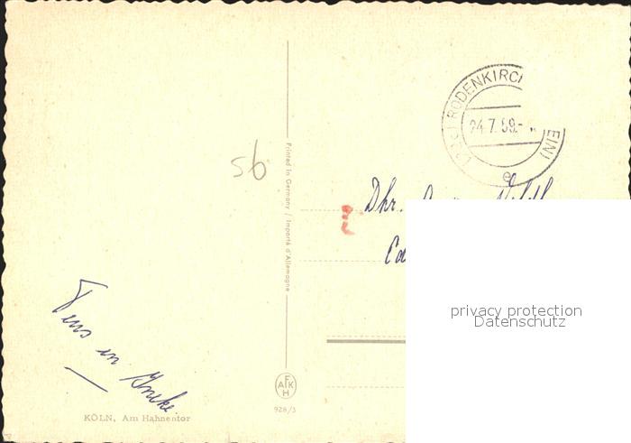 72297244 alte Postkarte Koeln Rhein Am Hahnentor postalisch gelaufen Erhaltung siehe scans KatCode: 11110005315000