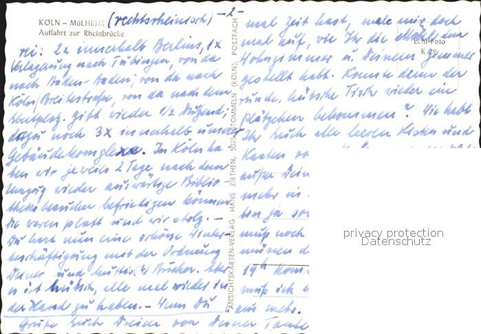 72596807 Koeln Rhein Auffahrt zur Rheinbruecke postalisch nicht gelaufen Erhaltung siehe scans [AndreD76] KatCode: 11110005315000