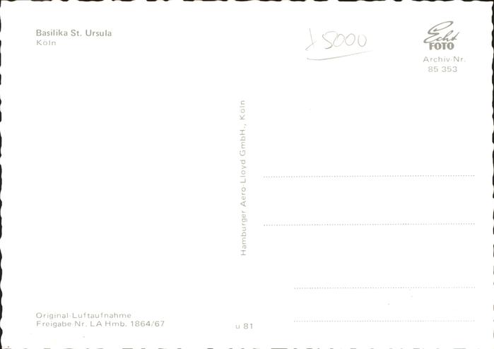 41394627 Koeln Rhein Basilika St.Ursula Fliegeraufnahme postalisch nicht gelaufen gute Erhaltung Alte Ansichtskarte Postkarte hz_L Katcode 11110005315000
