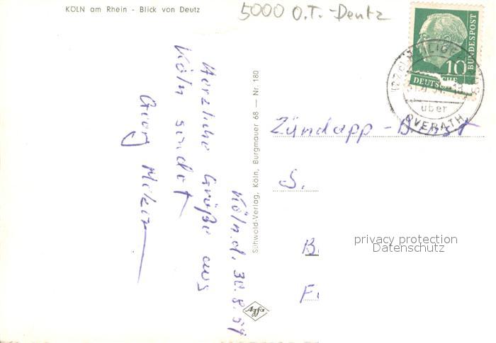 73690852 alte Postkarte Koeln Rhein Blick vom Deutz auf Dom postalisch gelaufen Erhaltung siehe scans [WerneD78] KatCode: 11110005315000