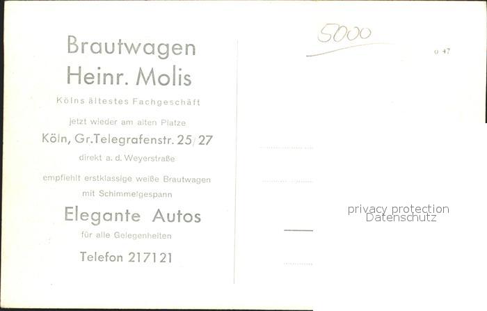 31720519 Koeln Rhein Brautwagen Heinr. Molis Pferdekutsche Autos postalisch nicht gelaufen Erhaltung siehe scans KatCode: 11110005315000