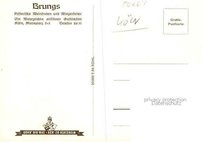 73853698 Koeln Rhein Brungs Historische Weinstuben und Winzerkeller postalisch nicht gelaufen Erhaltung siehe scans [WerneD78] KatCode: 11110005315000