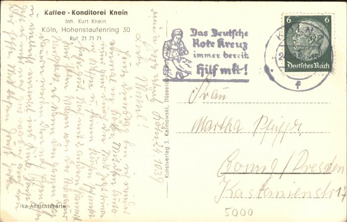 41300251 KoeLN Rhein Cafe Konditorei Kurt Knein innen postalisch gelaufen gute Erhaltung Alte Ansichtskarte Postkarte alte Postkarte hz_L Katcode 11110005315000
