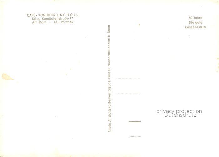 73018334 Koeln Rhein Cafe Konditorei Scholl postalisch nicht gelaufen Erhaltung siehe scans [WerneD78] KatCode: 11110005315000