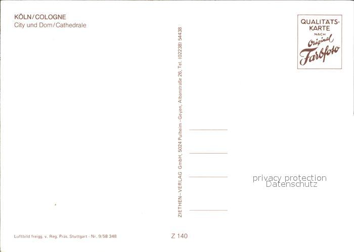 72207572 Koeln Rhein City und Dom Fliegeraufnahme postalisch nicht gelaufen Erhaltung siehe scans KatCode: 11110005315000