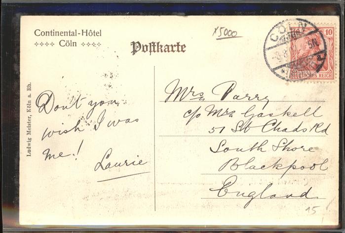 41397918 alte Postkarte Koeln Rhein Contineantal-Hotel Dom postalisch gelaufen gute Erhaltung KatCode: 11110005315000