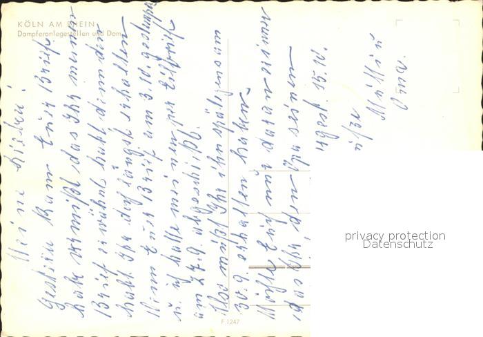 72322540 Koeln Rhein Dampferanlegestelle mit Dom postalisch nicht gelaufen Erhaltung siehe scans KatCode: 11110005315000